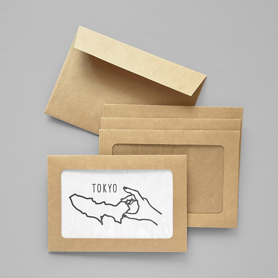 都道府県ポストカードがピッタリ入る窓付きのフレーム封筒とのセット販売です。