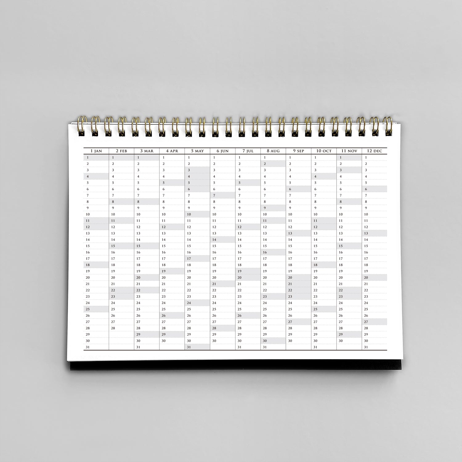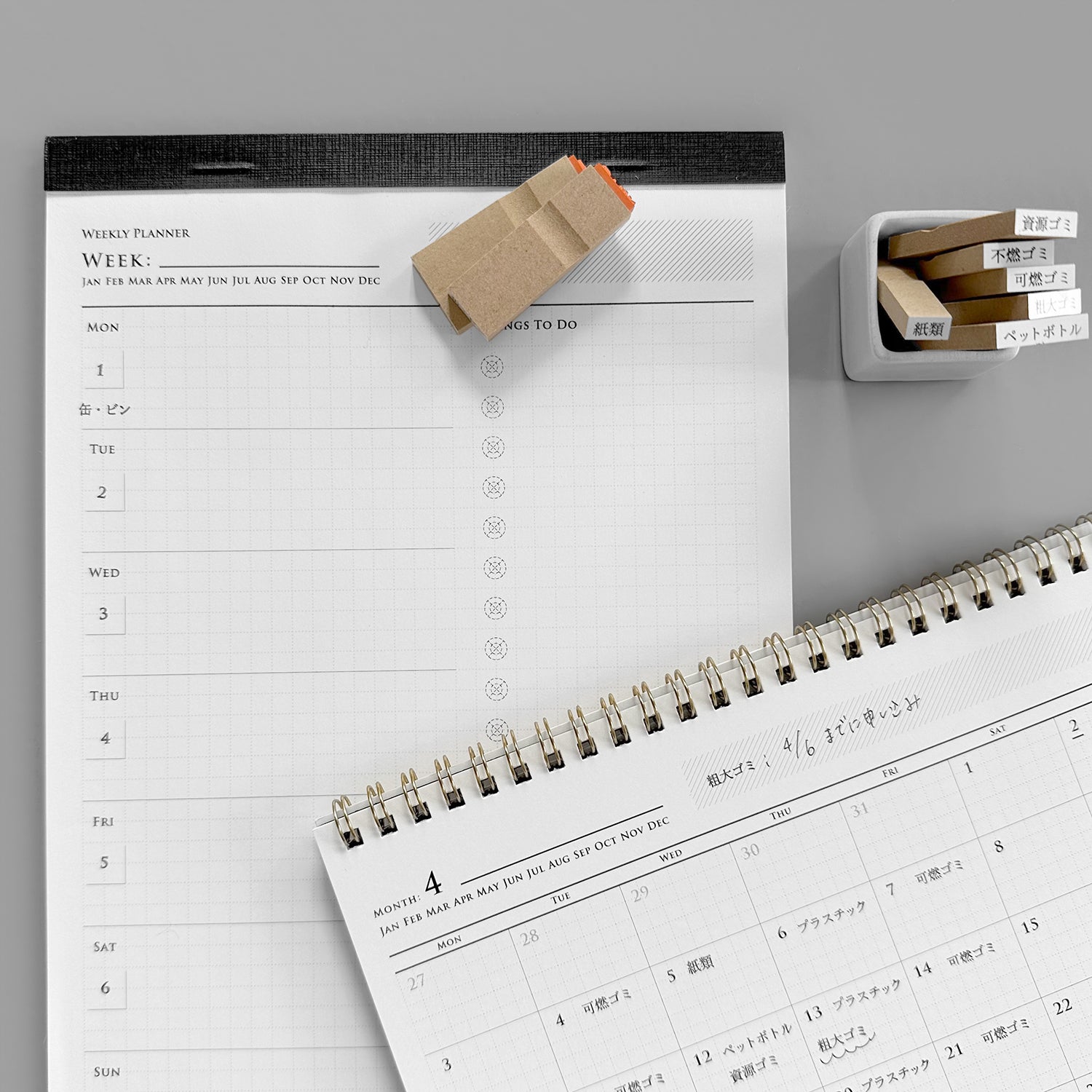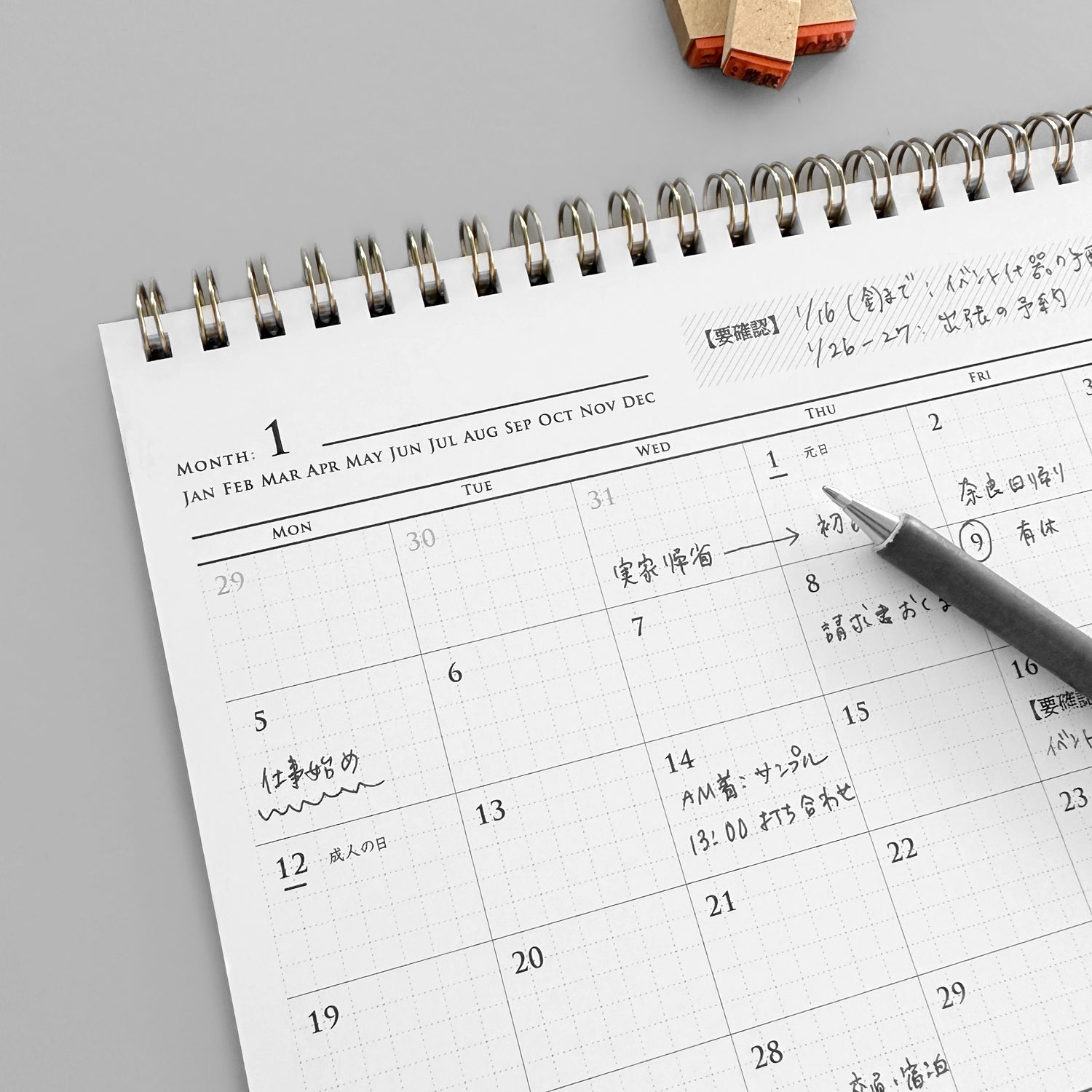 1年を一目で確認できますので、予定はもちろん、毎日続けたい習慣や体調管理などハビットトラッカーとしても。記号で記したり色で塗り分けたり、1年間の「記録」にも使える1ページです。